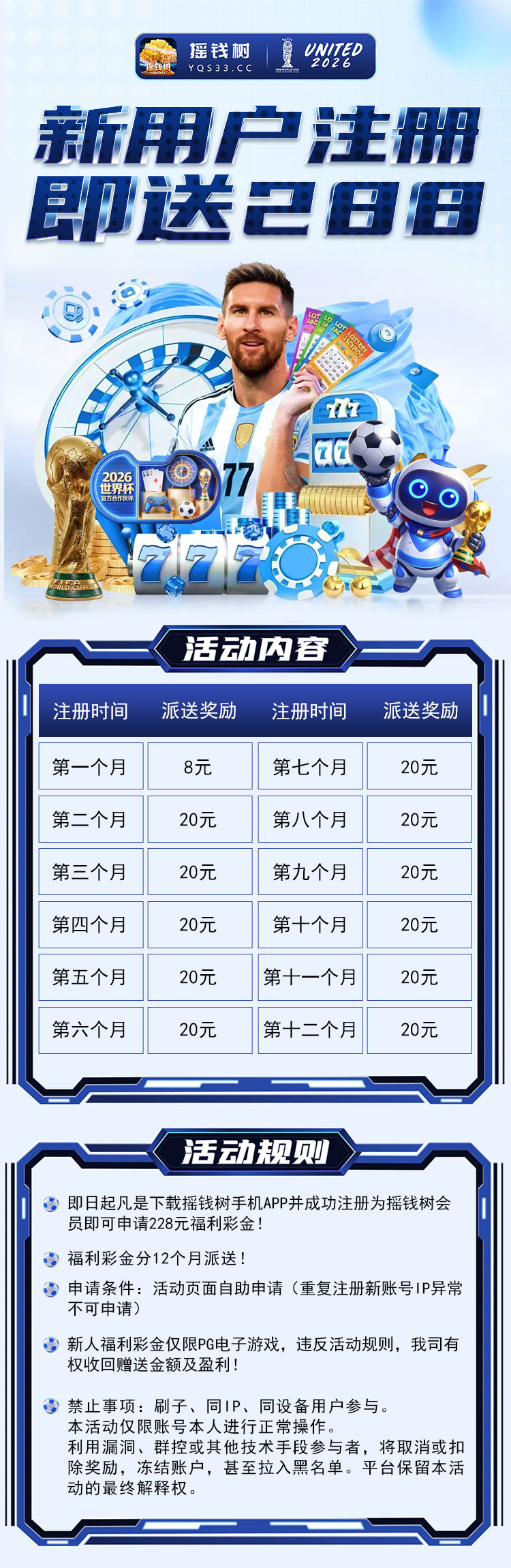 新用户注册优惠大厅自助领取228,第一个周期8,后面每月20!具体自测!