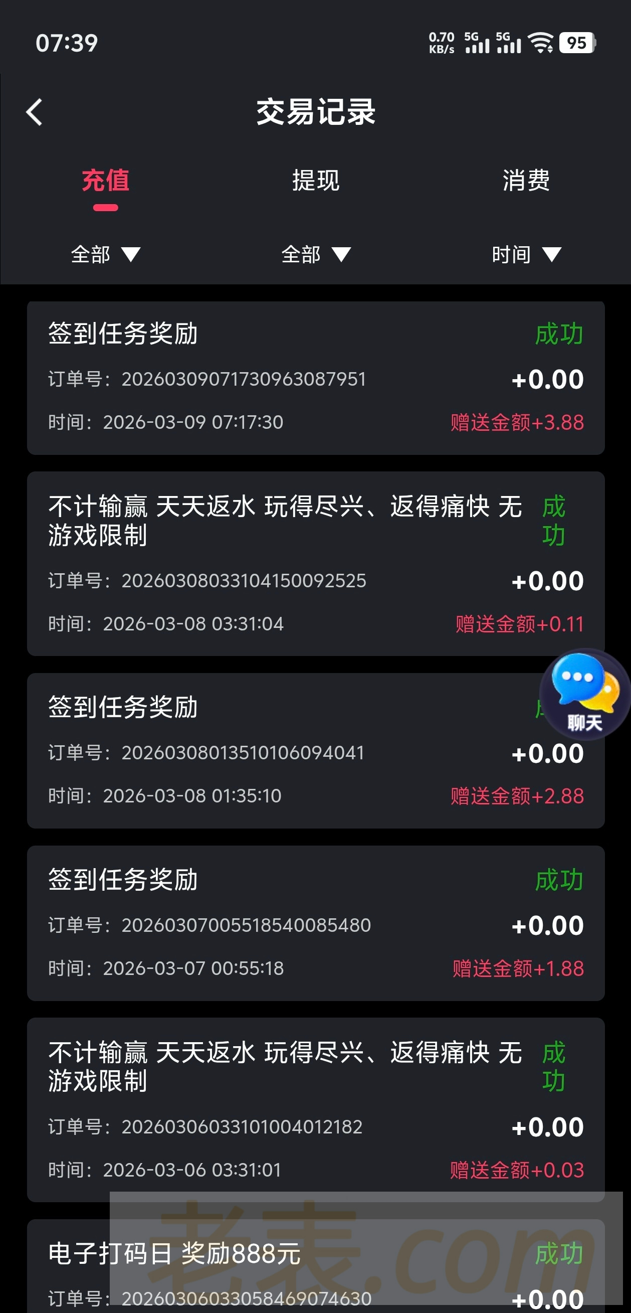 给兄弟们说一个台子 我已经白嫖过300了 下载注册好以后 点进去有个签到 每天都可以签到 不用充值 如果只签到不玩 7天下来能有30元左右 第8天又可以重新签到 反正我全程没充值一分钱 今天领了个3.88 麻将爆了100倍 前几天领了个7块 玩快三又出了100 前天小号累计签到7天存了30 又提了100 多号多撸