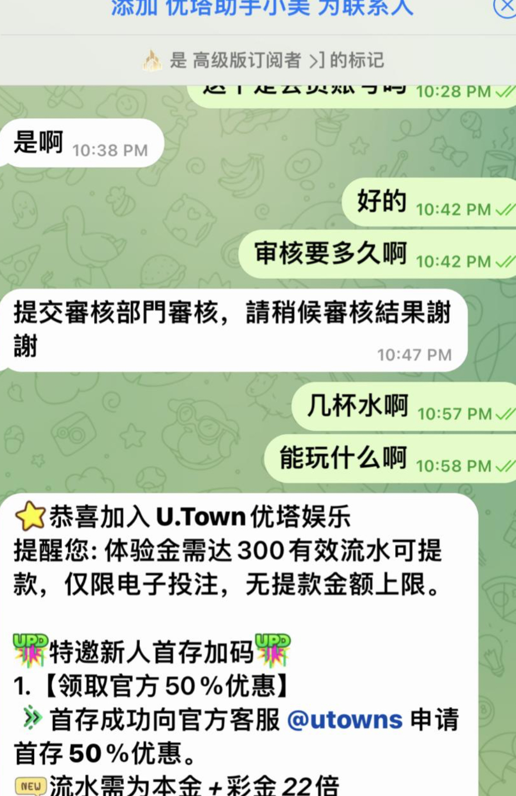 飞机上面送的,去频道里面搜百家乐打法,就有机器人给你发,也可以直接去找个那个客服,绑定usdt,送10u打到300流水可以提,我没打出来,其他频道不知道有没有  @ut86free 客服飞机号