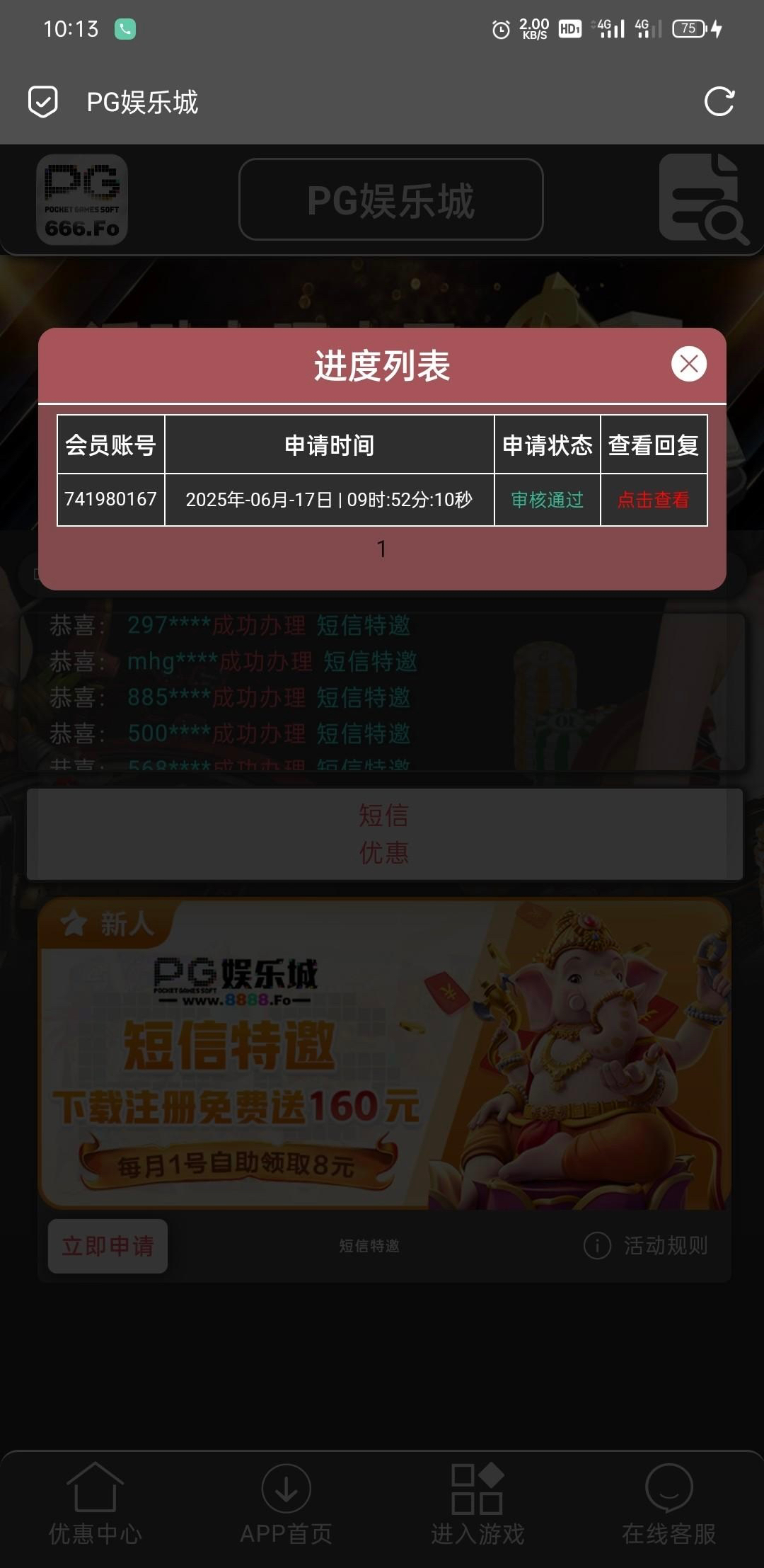 没收到短信 直接申请的 没注册过的可以试试