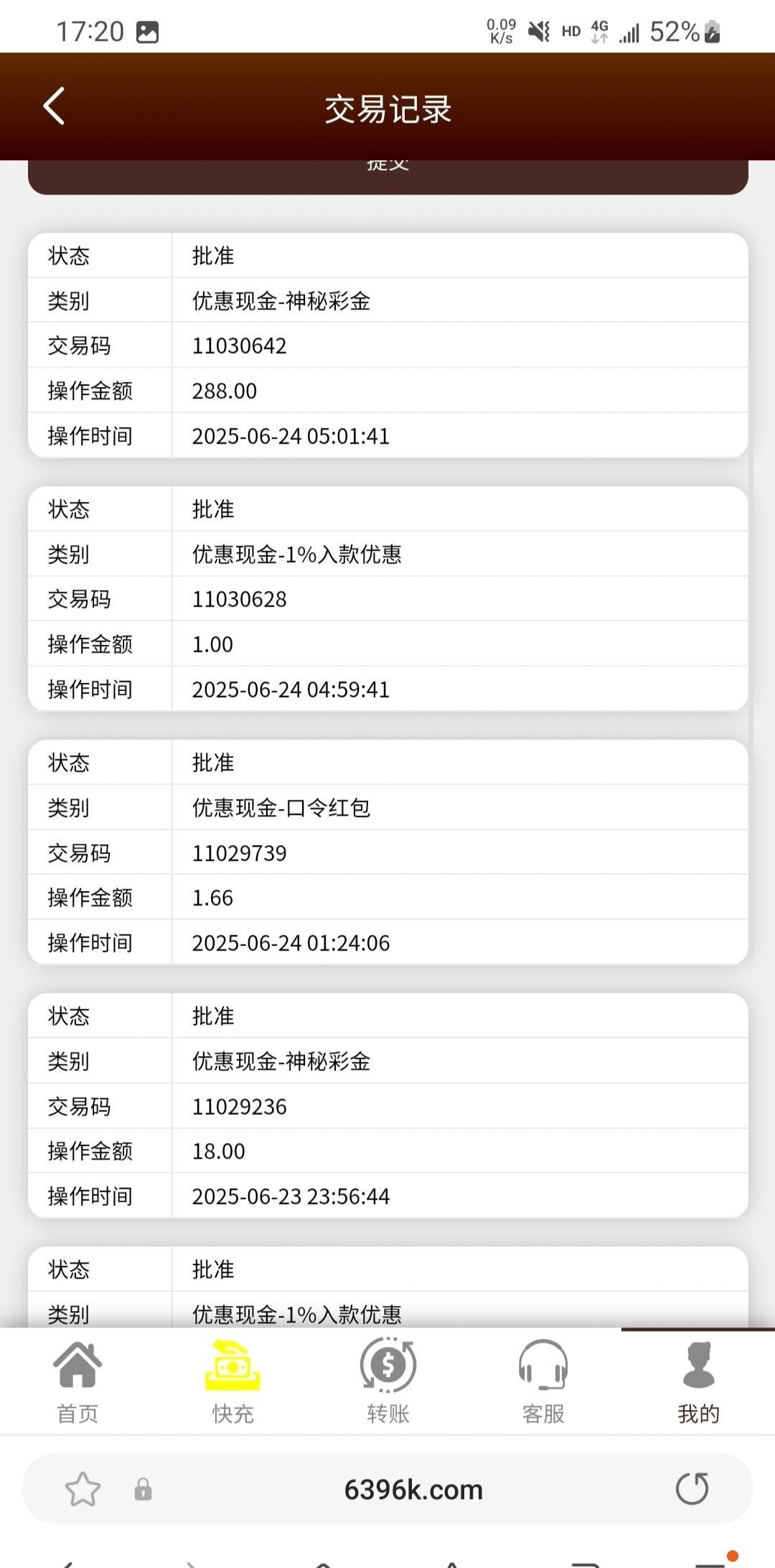 该活动新用户无视!神秘彩金连续送三天,每天需要充值最低10元,用ok充就行了!这次送了两天18,第三天直接送了288