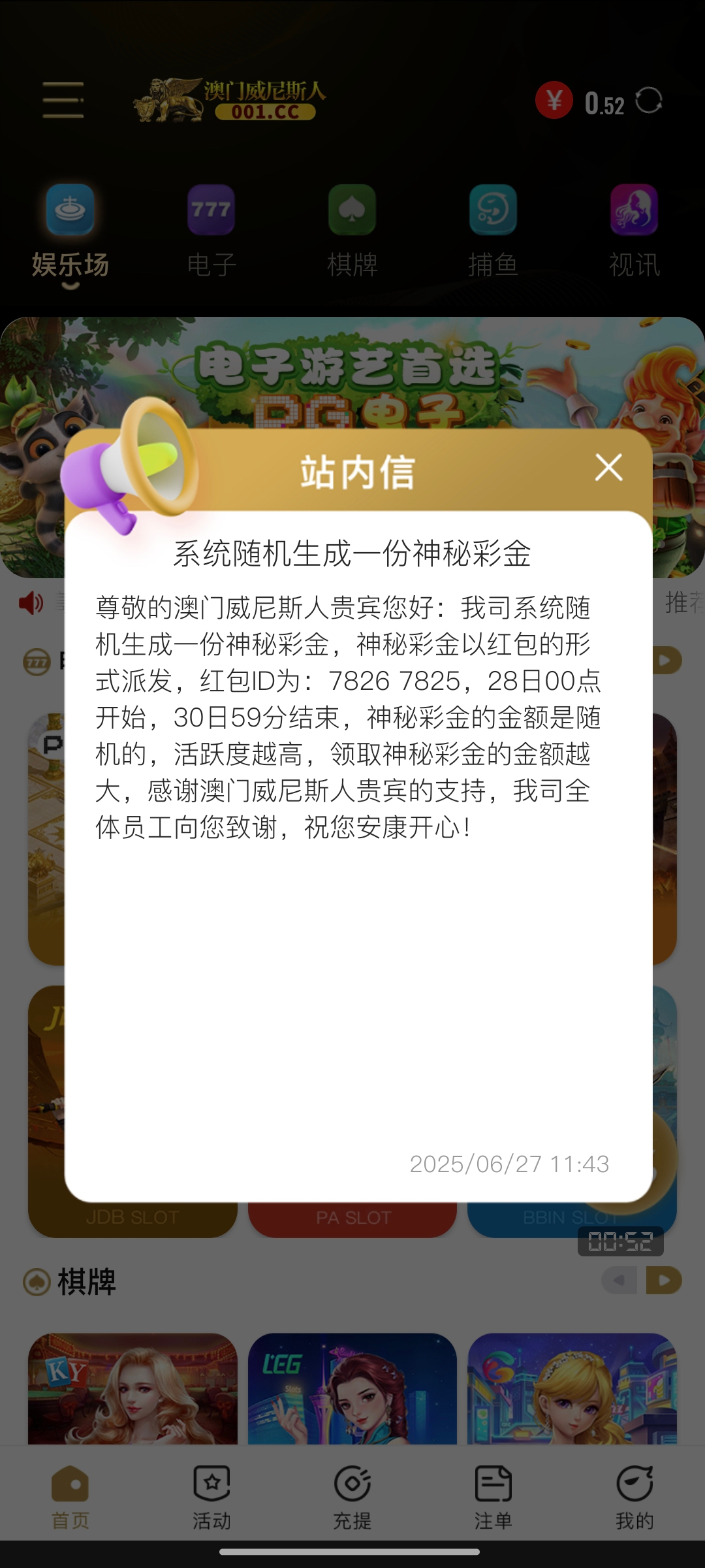 【威尼斯001】—✅— 神秘彩金