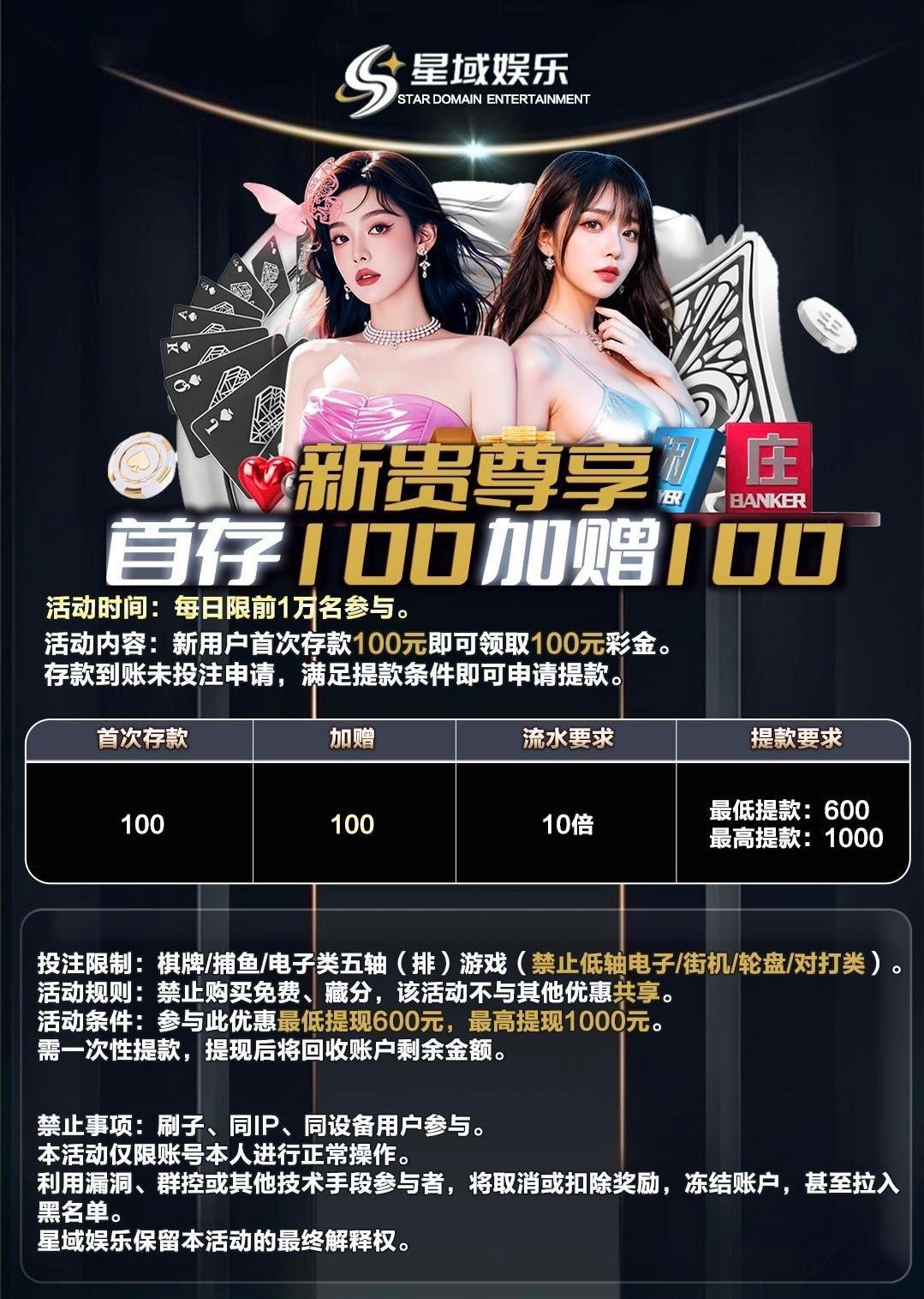 【星域娱乐】100+100注册送6-888