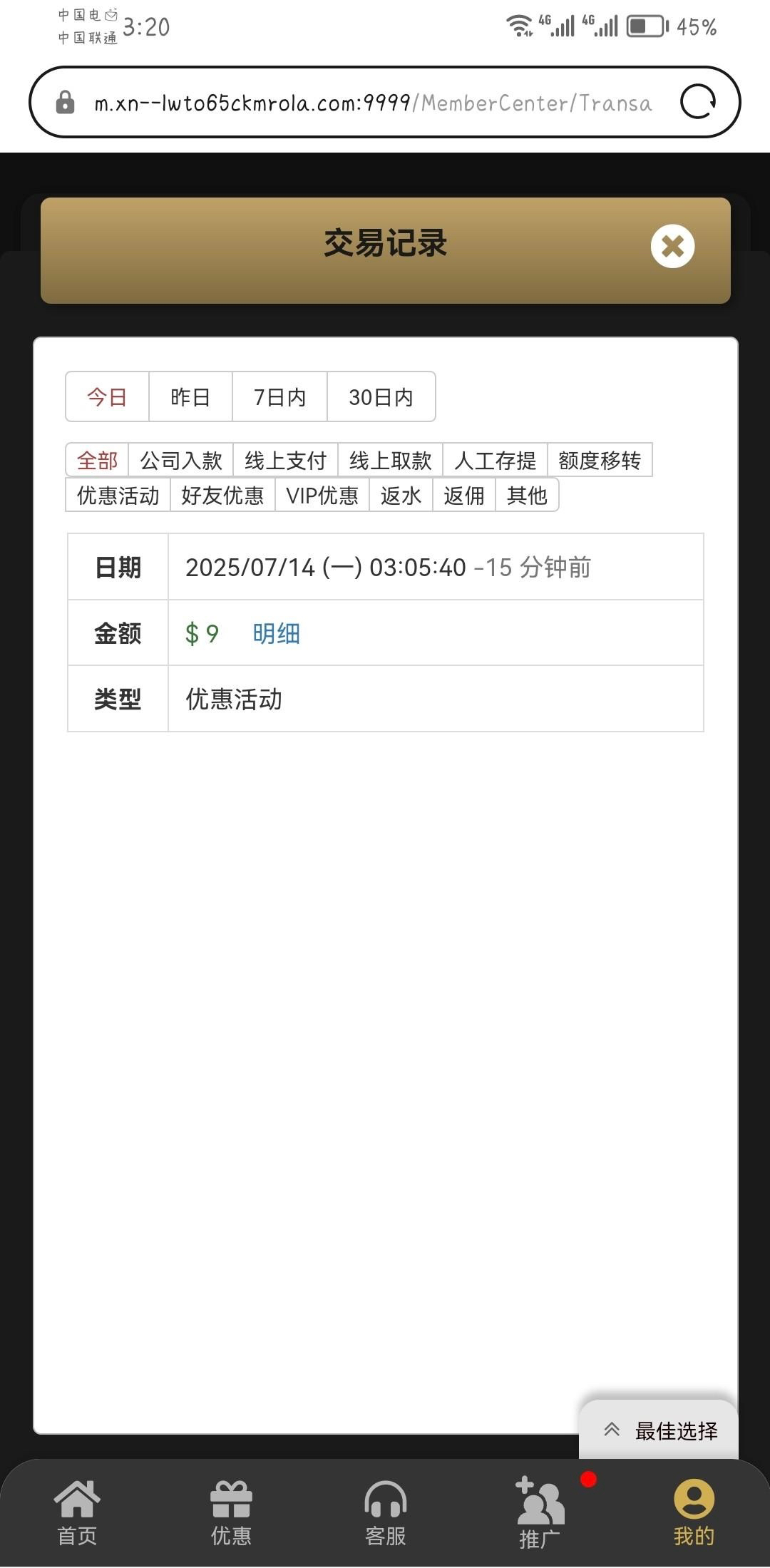 刚刚来电话送了9,找客服申请电话彩金
