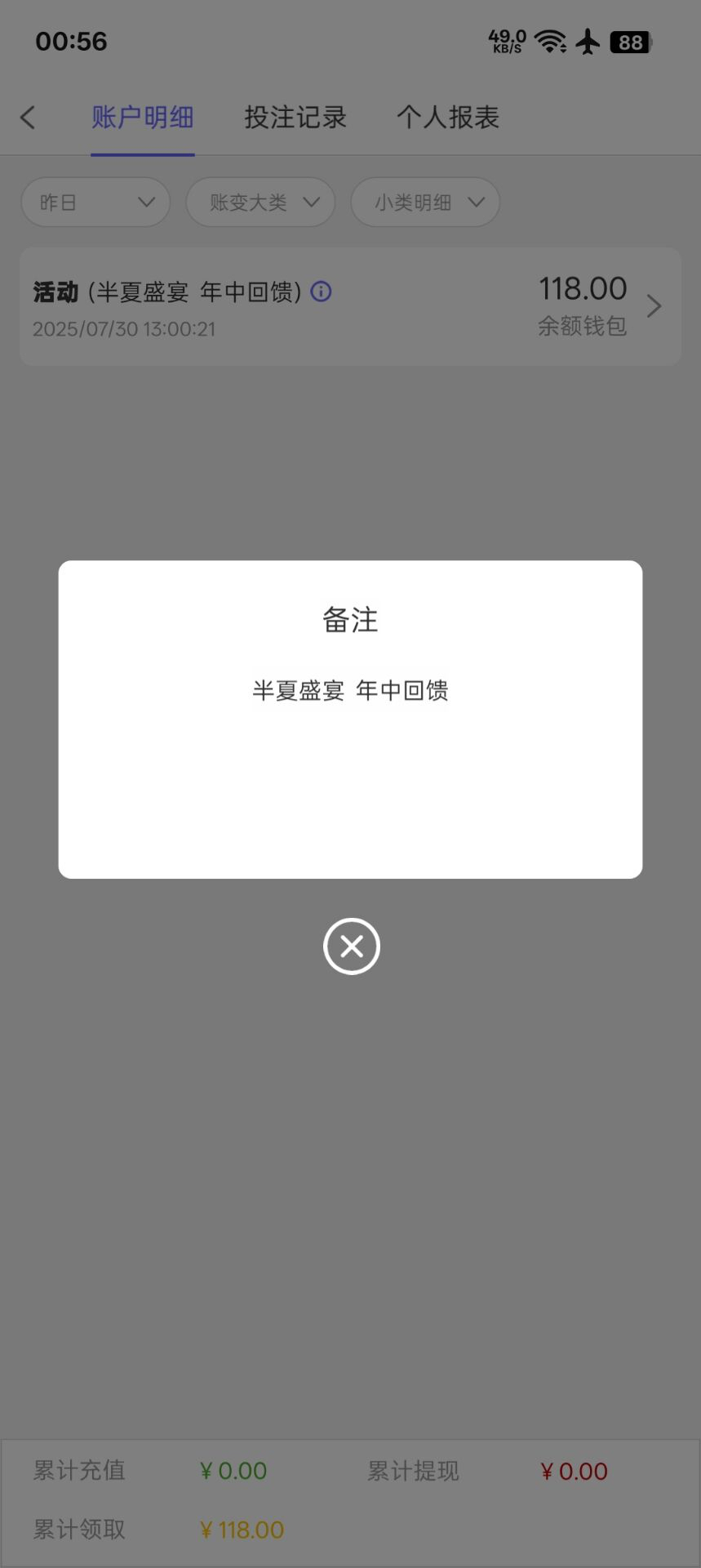 有号可以上去看看,是自动到账的,回馈118