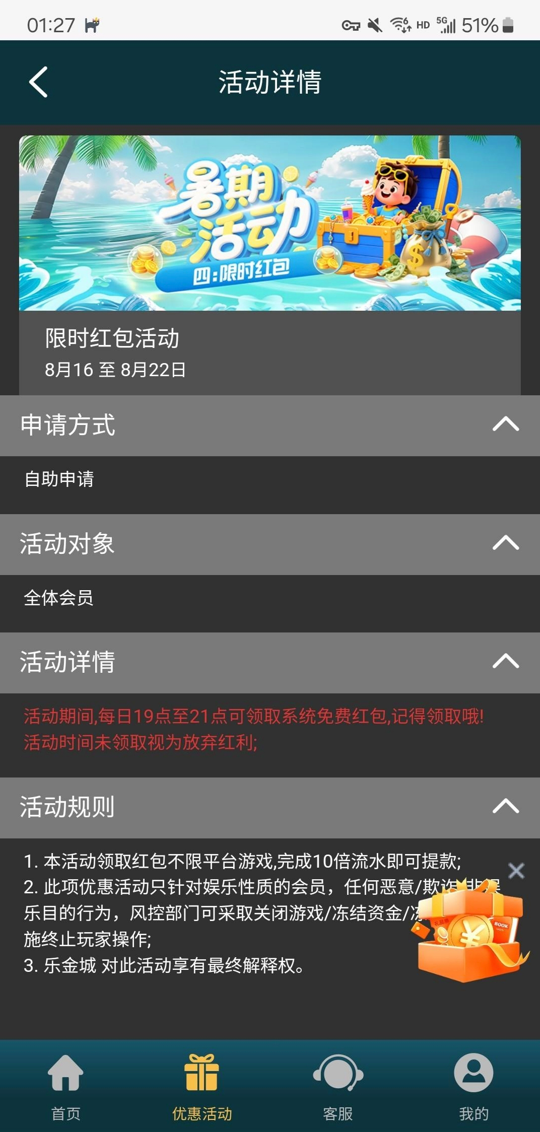 8月16日到8月22日 每天的19点到21点这个时间段到优惠里面自助领取。过了这个时间段可就没有了,还能领四天,一天八块。